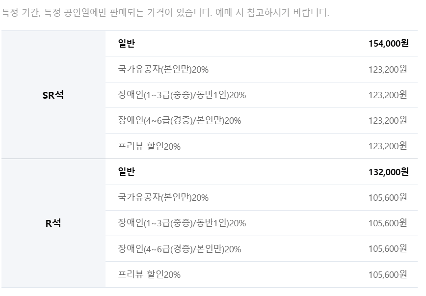 참고로 국가유공자, 장애인 (1~6등급)에 해당되는 사람들에게는 20% 할인이 가능하시니 참고 바랍니다.