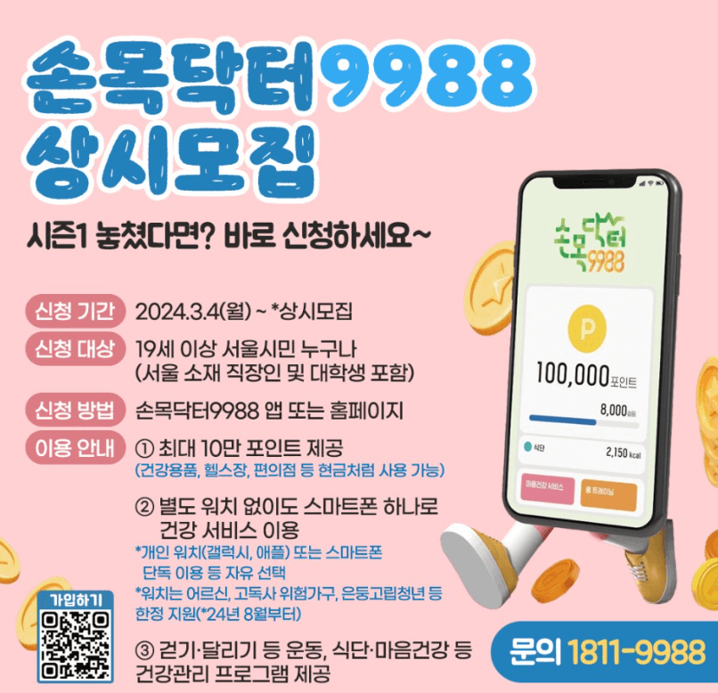 손목닥터 9988이 시즌2로 돌아왔습니다. 걷기만 헤도 무려 10만 포인트나 준다고 하는데요. 지금 당장 알아보도록 합시다.