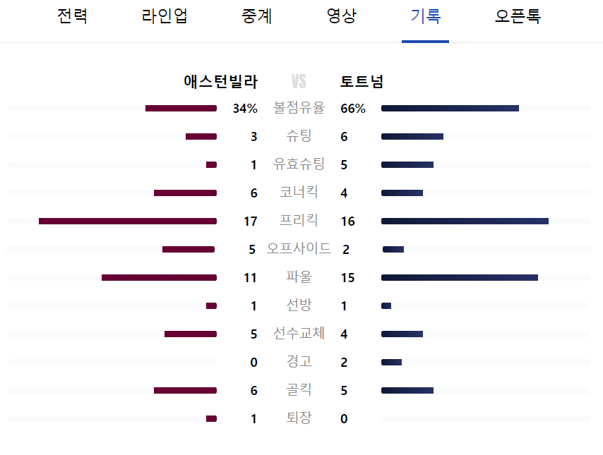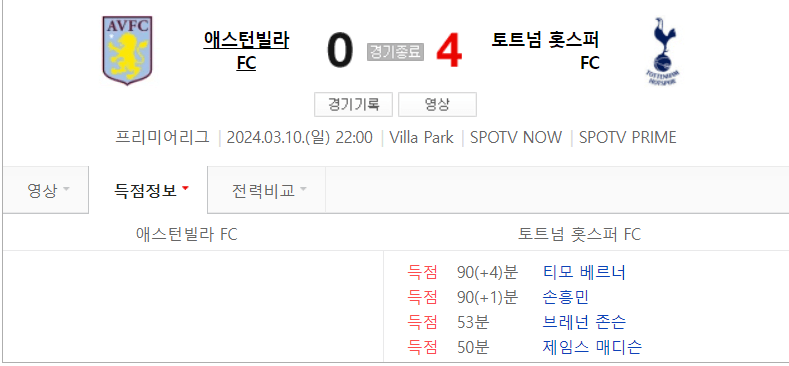 토트넘 vs 아스톤 빌라 경기 결과