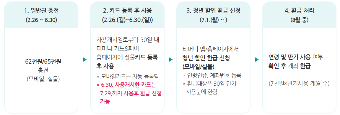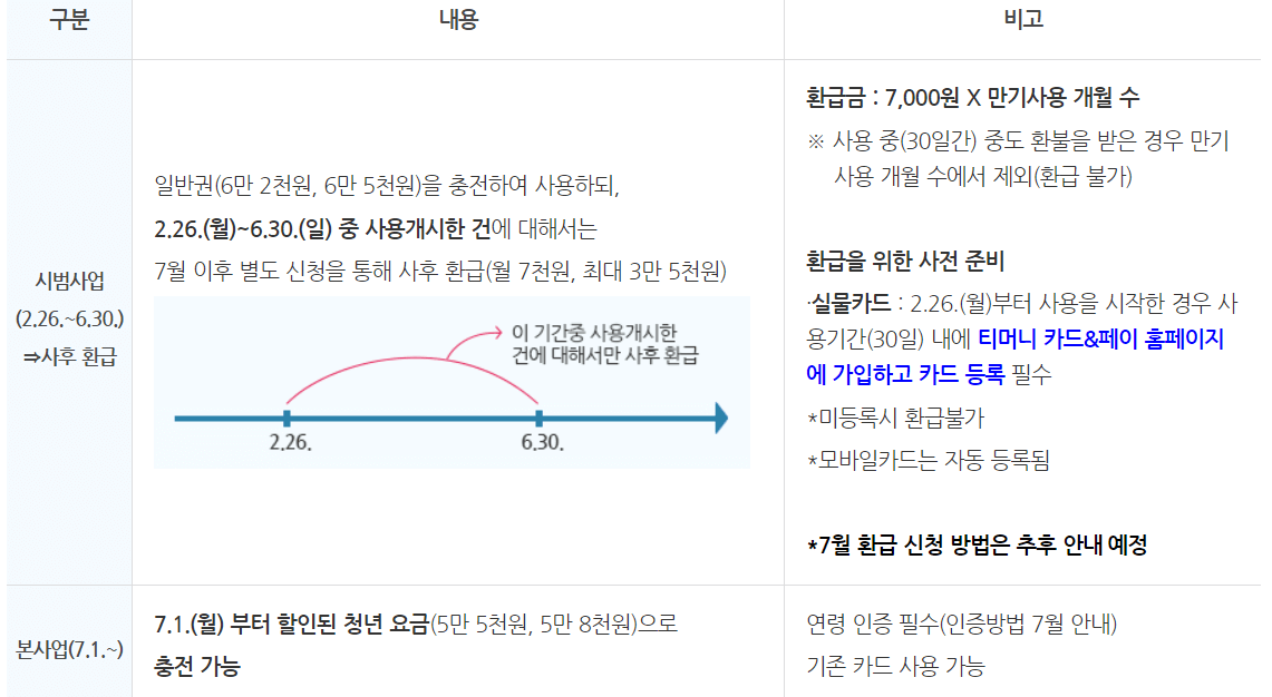 본사업(7.1.(월))부터 별도의 청년 요금(5만 5천 원, 5만 8천 원)으로 충전 가능