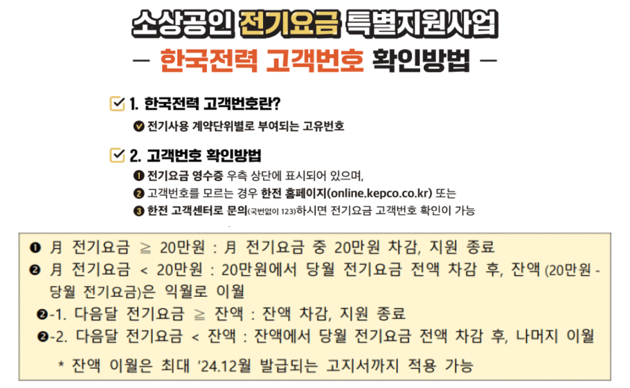 고객번호를 모르는 경우 한전 홈페이지 (hittp://online.kepco.co.kr)또는 한전 고객센터로 문의 (국번 없이 123)