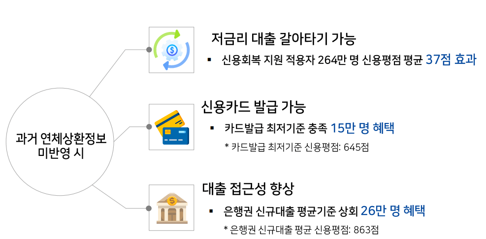 연체이력 공유가 중단되기 때문에 신용 점수가 바로 높아집니다.