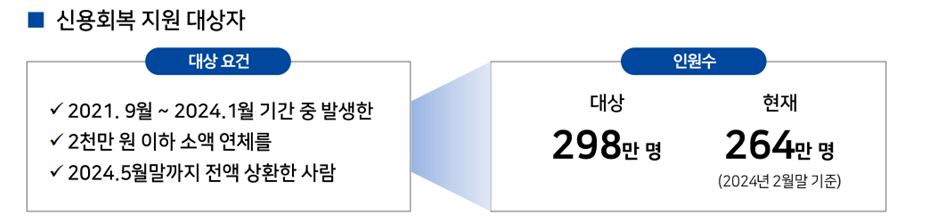 2021년 9월 1일 ~ 2024년 1월 31일 사이 2천만 원 이하의 소액연체가 발생한 개인 및 개인사업자