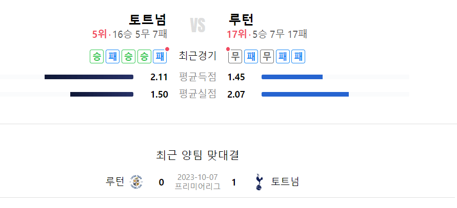 토트넘 훗스퍼 VS 루턴 타운 전력비교