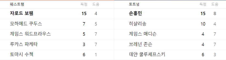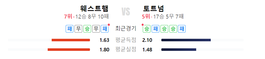 토트넘 훗스퍼 VS 웨스트햄 전력 비교