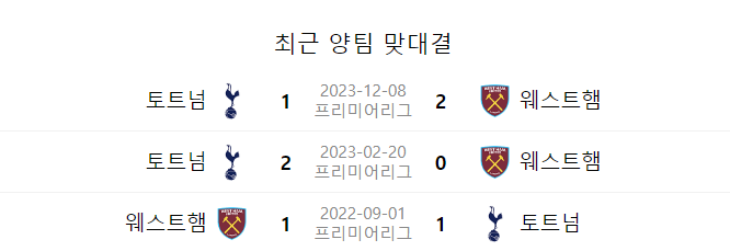 최근 3경기 전적을 비교하면 1승 1 무 1패로 토트넘과 웨스트햄이 막상 막하의 모습이 보입니다.